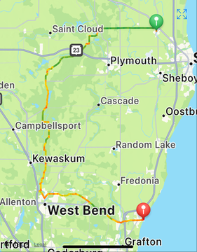 Since we were in a bit of a hurry by that time, I told them no stop for ice cream and I would attempt to take a more direct route than what I originally had planned. I had a secondary route in mind which would be more direct, and luckily I almost nailed it down without any cheats and got us to Hwy 45 just north of Kewauskum.