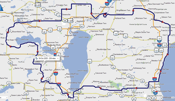 I worked up a route last night for Kevin to put into his GPS taking us a very long way around Lake Winnebago. Mostly since the fall color report showed all of those counties were at 50% and also to get over towards Lake Michigan for a cool down near the end of our ride.